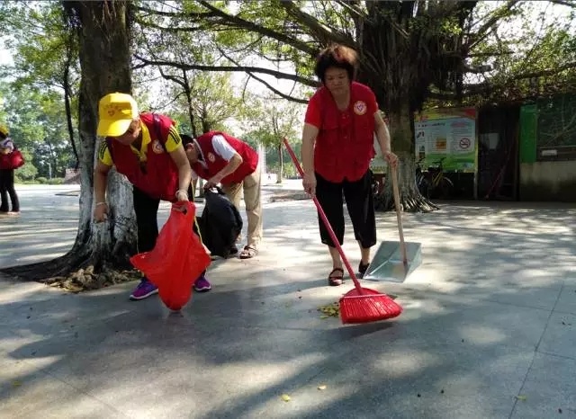 7月26日下午,室外气温33度,在市区人民广场,一群身穿“红马甲”(志愿者服)的老年人有的捡拾垃圾,有的扫地,衣服早已被汗水浸透。原来,这是市志愿者联合会老年志愿服务队的队员参与“巩卫”工作的场面。据志愿者说,每天两次进行常规保洁。一来可以为云浮市的“巩卫”工作加把力,二来可以适当减轻环卫工人的工作压力。