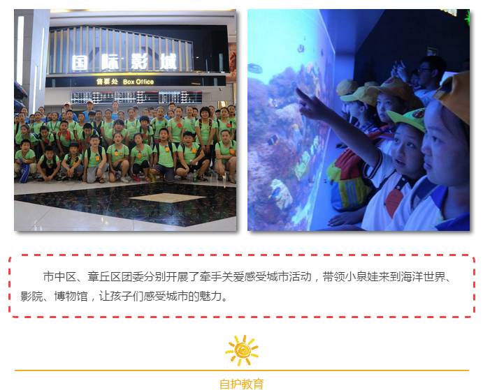 有这样一群人,他们热情无私,他们阳光开朗,他们真诚善良,他们奉献青春,他们有一个共同的名字——志愿者。2017年暑假,济南青年志愿者深入全市28个街道、乡镇,投入到“牵手关爱七彩假期”系列活动中,与“小泉娃”一起共度愉快的假期生活。