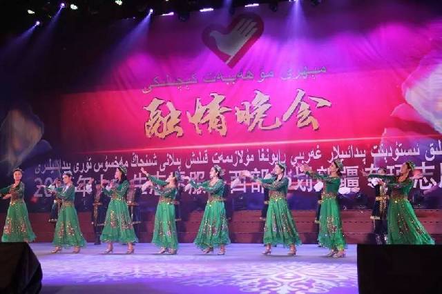为了激励志愿者服务豪情,让志愿者领略新疆民族文化。7月28日晚,新疆西部计划项目办举办了由全疆 14个地州2017年新志愿者参加的“2017年大学生西部计划新疆专项志愿者融情晚会”。