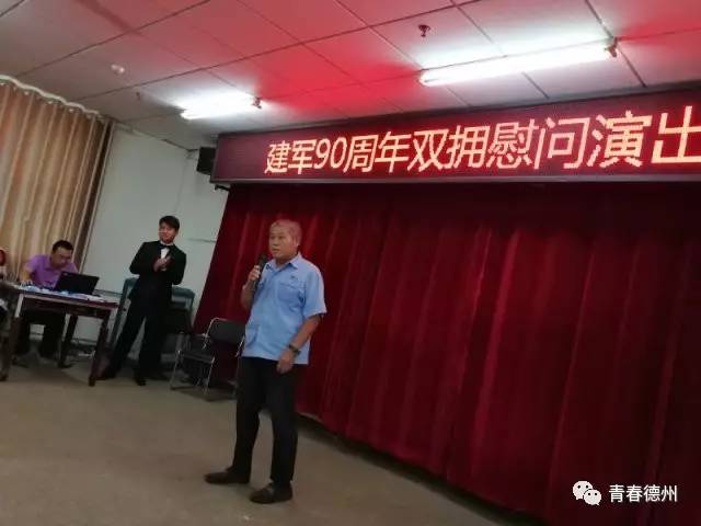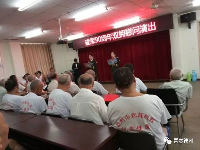 7月29日,团德州市委、市民政局、山东金鲁班集团交通发展有限公司组织志愿者开展建军90周年双拥慰问演出活动,志愿者为优抚医院的退伍军人表演了歌舞、武术、朗诵等丰富多彩的文艺节目。