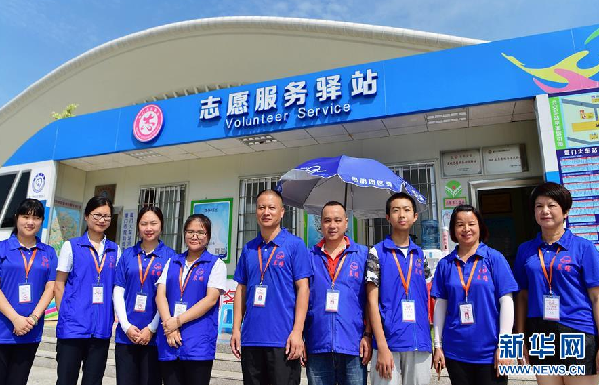 8月3日,厦门晨曦公益服务队队员在位于厦门火车站南广场的志愿服务驿站合影。这个驿站是厦门会晤省级志愿服务示范驿站,为旅客提供24小时免费便民服务。