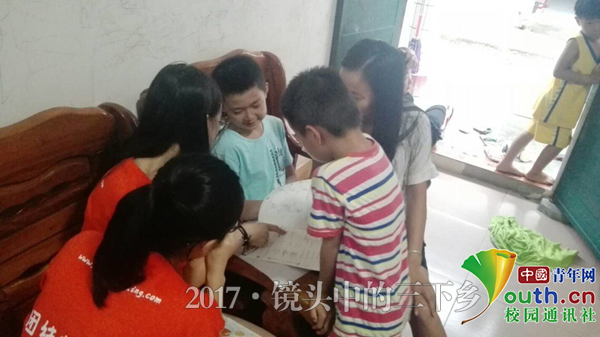 与学生及其小姨讨论暑假作业的问题。中国青年网通讯员 黄显尧 摄