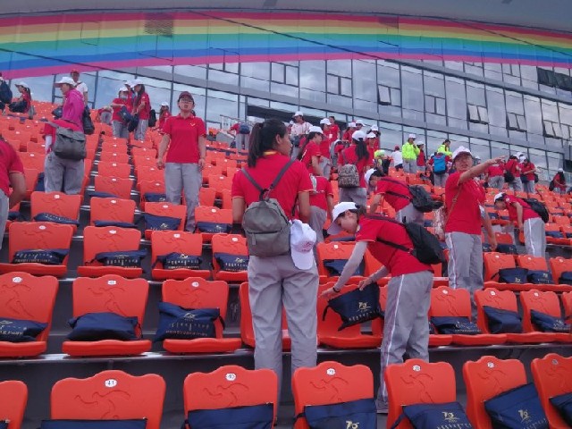 在本次志愿服务活动中,有这样的一组志愿者,她们是唯一 一组在会场内,但全程背对舞台——“亮丽风景线”志愿者