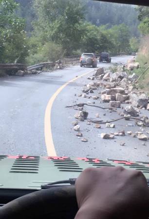 由于山体滑坡,