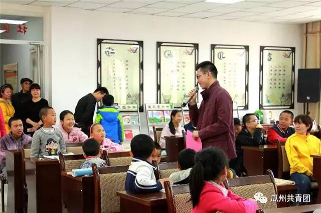 4月15日下午,瓜州团县委在邮电巷社区举办“心手相牵快乐成长”关爱留守儿童志愿服务启动仪式暨2017年“小蒲公英课堂”开课仪式,县人大副主任田顺基、源泉镇相关部门领导、常乐宾馆部门经理、河南大学研究生支教团老师们以及源泉镇4个社区的70余名孩子们参加开课仪式。团县委书记王欢主持开课仪式。