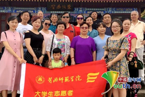 中国青年网黄冈8月23日电(通讯员 陈翠 谢安琪 陈银兰)湖北的7月酷似人间蒸笼,烈日的骄阳传递给“青蓝紫”志愿者如火的热情,7月中上旬,黄冈师范学院青蓝紫-阳光之旅暑期社会实践15名成员,来到黄冈遗爱湖、赤壁公园等景区开展公益讲解,为本地市民及外地游客弘扬东坡文化,并为孤寡老人量身定做“遗爱湖漫步”活动,畅谈黄冈文化、相约遗爱、关爱孤寡。