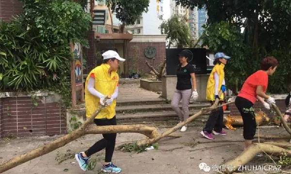 台风“天鸽”给珠海造成了严重的破坏,街头路边的绿化是重灾区,随处可见的树枝、铁皮横落在马路上,严重影响了市民的正常出行。25日,团珠海市委、珠海市青联四组、珠海市爱心促进会组织了百余名青联委员、志愿者,走上水湾路街头,清理树枝、杂物,加速恢复道路畅通。