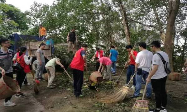 25日,团新会区委、新会区义工联组织了团员青年、党员义工到新会人民会堂开展台风灾后清障工作,帮助市民尽快恢复道路通行。各镇(街、区)团组织也分别组织上百名义工、热心居民参与志愿服务清理工作,发挥团员青年先锋模范作用。