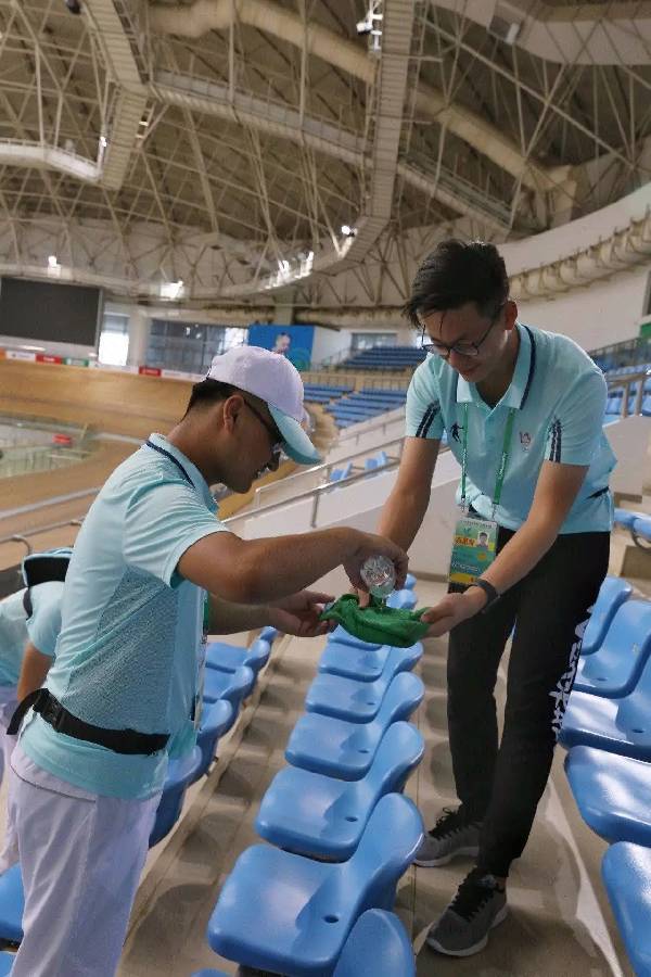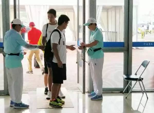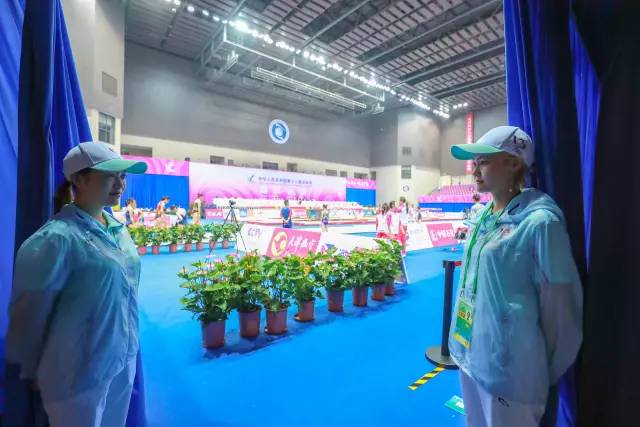 蹦床赛事的志愿服务由天津科技大学的志愿者负责。他们在自己的岗位上挥洒汗水,时刻体现着志愿者精神。