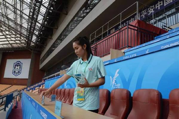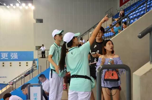 水球赛事的志愿服务是由天津中德应用技术大学、天津海运职业学院的志愿者负责。他们专心致志地在岗位上工作,只为更好地为观众、为运动员、为每一个参与全运会的服务。