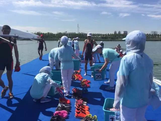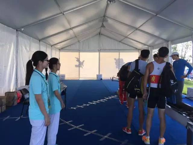 赛艇赛事的志愿服务由天津财经大学、天津医学高等专科学校的志愿者负责,在烈日的阳光下,他们没一句抱怨,为了比赛更顺利的进行,他们一丝不苟地在岗位上工作。