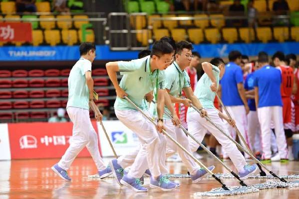 男子青年篮球赛事的志愿服务由天津中医药大学志愿者负责,从观众服务到场地清扫,每一个岗位上,都能看到志愿者们认真热情的服务。