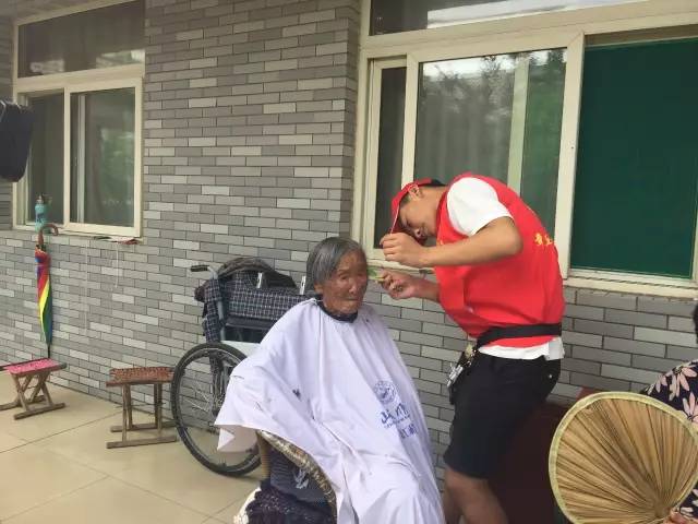 志愿者为老人理发