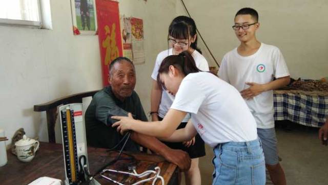 志愿者为老人量血压