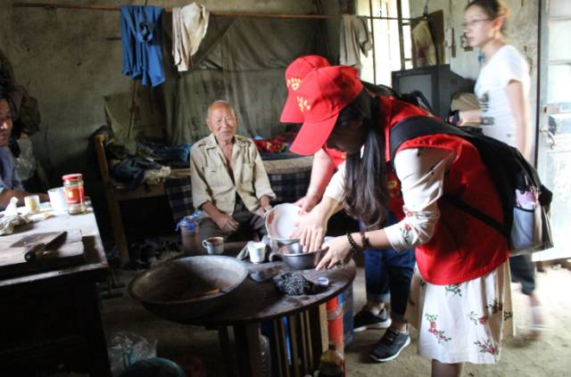 志愿者为老人整理家务