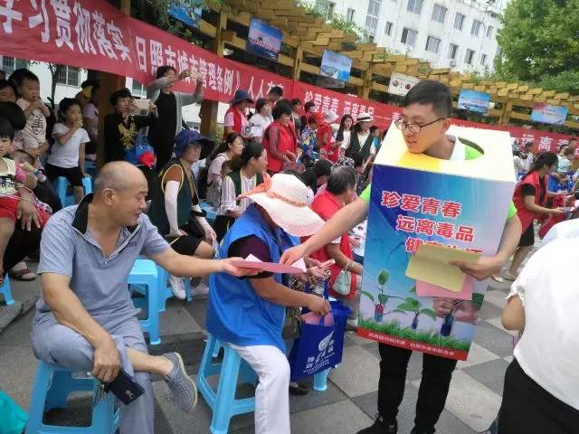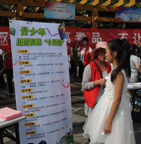 禁毒志愿者向社区青少年和居民发放《珍惜青春年华 争做禁毒先锋关于动员全市青少年参与禁毒人民战争的倡议书》、《青少年拒绝毒品“十不要”》等宣传材料1500余份。