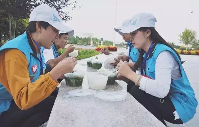 一个上午很轻易便晃过去了,交接班的时候,大家一起吃着后勤人员送来的午餐,边吃边聚在一起聊天,才发现,原来我们都深爱着康巴什,深爱着志愿服务工作。中午是最晒的时间段,爱美的女孩子仍扛着大太阳坚守在岗位上,困倦袭来,掐着自己保持清醒。