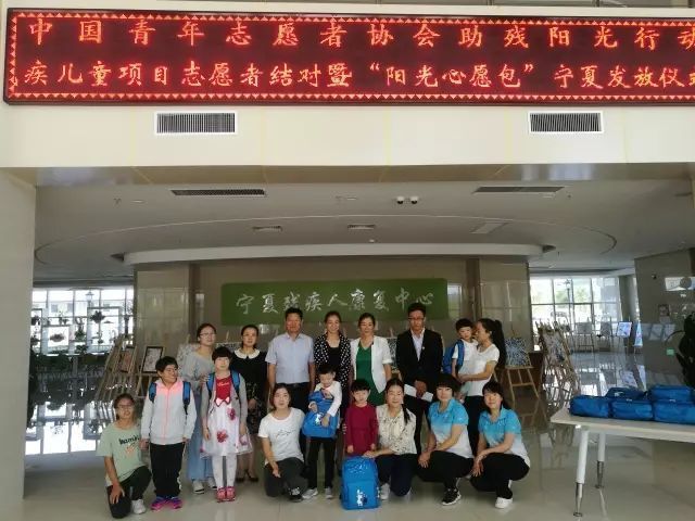 自治区团委、宁夏志愿者协会与宁夏残疾人康复中心、宁夏儿童福利院及微光义工志愿者服务队举行了中国青年志愿协会助残阳光行动关爱应入学残疾儿童项目志愿者结对暨“阳光心愿包”宁夏地区发放仪式。