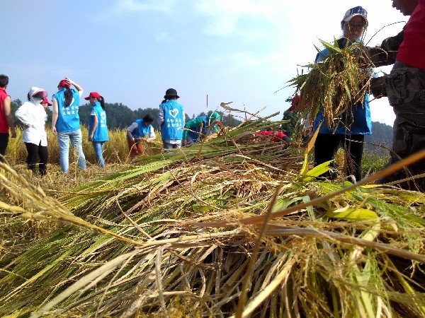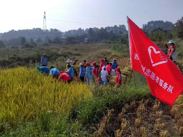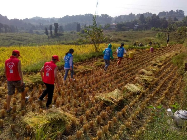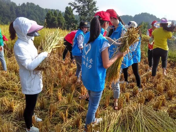 金秋九月,正是秋收好时节。针对我区农村地区每年大量人员外出务工,秋收时期劳动力较为短缺的现状,万盛经开区西部计划项目办联合金桥镇团委,开展了“喜迎十九大--金秋助农”活动暨西部计划志愿者扶贫支农工作,在雨水来临前帮助农民抢收稻谷。