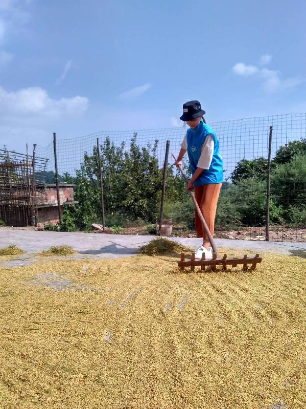 到了农户家,志愿者们顾不上喝水休息,趁着烈日赶紧将谷子铺开晾晒,“今天能晒多久就晒多久,天气预报说明天有雨呢。”西部计划志愿者陈治宇说到。