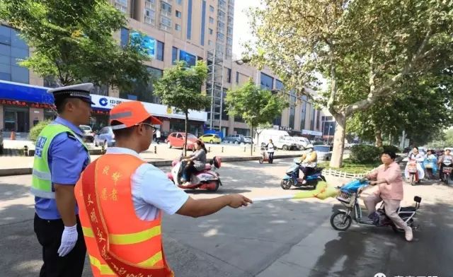 “您好,现在是红灯,请不要越线”。顺畅的交通秩序,也离不开志愿者的辛勤付出。