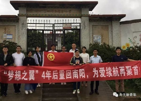 秋分甫过,我们便启程去探望五年前的那群山村孩子。前方是南阳市方城县柳河乡程庄小学,相识源于2013年共青团寿光市委与富赢福特4S店发起的“梦想之翼”爱心支教河南项目,当时有十三名支教志愿者来到这里,在十天的时间里种下了希望,带走了感动。