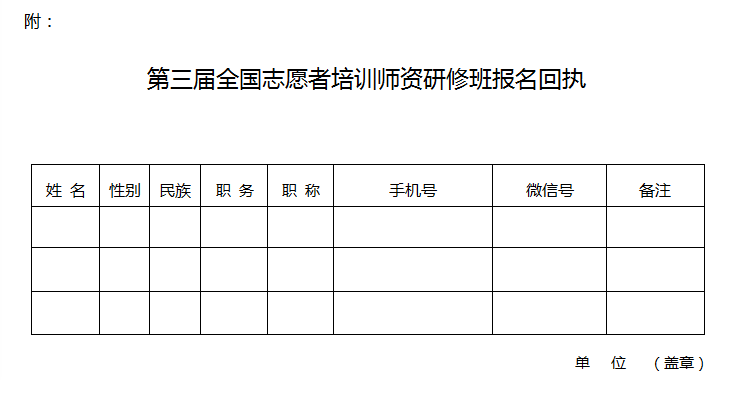为深入学习贯彻党的十九大精神和习近平总书记系列重要讲话精神,贯彻落实《中长期青年发展规划(2016—2025年)》和《中国青年志愿者行动发展规划(2014—2018年)》,大力弘扬社会主义核心价值观,促进志愿服务规范化、制度化发展,深化志愿服务培训体系建设,中国青年志愿者协会、中国青年工作院校协会、团中央青年志愿者行动指导中心、共青团湖北省委拟定于今年 11月5日至11日在武汉举办第三届全国志愿者培训师资研修班。现就有关事宜通知如下。
