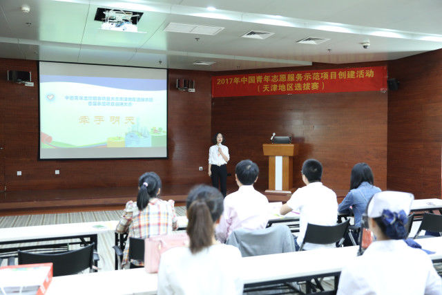 9月28日,由共青团天津市委员会、天津市精神文明建设委员会办公室、天津市民政局、天津市水务局、天津市卫生和计划生育委员会、天津市残疾人联合会主办,天津市青年志愿者协会、天津市青年社会组织发展促进中心承办,共青团天津市和平区委员会协办的2017年中国青年志愿服务项目大赛天津地区选拔赛在和平区创新大厦举行。