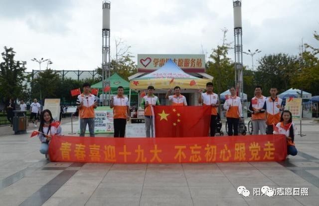 10月1日国庆节当天,日照市阳光助残志愿者协会党支部组织协会党员、团员青年志愿者积极参与灯塔广场、市图书馆两处青年志愿服务岗志愿服务活动;在灯塔广场为广大外地游客提供“九小”便民志愿服务并向游客免费发放国旗;在市图书馆里技师服务大队志愿者们开展了整理图书、维护借阅秩序等志愿服务,用青春奉献庆祝新中国成立68周年,喜迎党的十九大胜利召开!