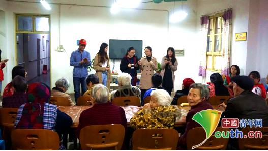 安富镇敬老院位于荣昌区安富镇洗布潭村,全院共有老人47名,年龄集中在80岁到100岁之间,年龄最大的为93岁,大多为留守老人和失独老人。研究生支教团和安富中学的青年志愿者为老人们买去了龙眼、香蕉等新鲜的水果,并为老人们准备了丰富多彩的节目。敬老院院长和老人们对各位志愿者的到来表示了热烈的欢迎。