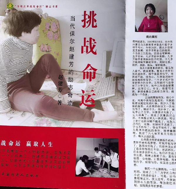 新兴领域青年赵建芳,今年38岁,从小患有小儿麻痹症,上肢严重瘫痪,生活难以自理。然而,她天性不屈,一直没有向命运低头。她酷爱文化知识,练习用脚趾握笔,用脚趾翻书,自学文化知识。她不能上学,她家的炕头就是她的学校,就是她的课桌。通过自学到了十几岁的时候,她不仅掌握了小学一到五年级的所有课程,而且写字的速度一天比一天加快,每天可以写两千字,字体也特别工整秀丽。