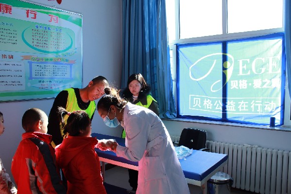 白衣公益组织义诊 贝格口腔为留守儿童检查牙齿