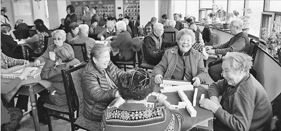 在福利院五楼的大厅内,正在进行着一场热闹的麻将比赛。20桌麻将同时展开,参赛的老人多数集中在75岁至85岁这个年龄段。姜连军介绍,福利院里90岁以上老人近20位,年龄最大的已过百。麻将大赛、赛歌会、元宵节灯谜会、三八妇女节击鼓传花等活动,老年人都很喜欢参与。此外,每个楼层还有老人点赞墙、生活指南墙、老人心愿墙、笑脸墙,还举行老年之星、才艺之星、和谐房间、模范夫妻等评比。江连军说,每个季度院里都会搞各种活动,极大地减少了晚年生活的孤独感,培养老人的成就感。