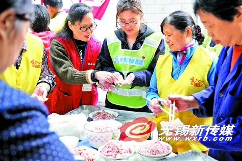 14日,一场主题为“巧手包馄饨,传递邻里情”养老主题关爱活动在梁溪区北大街街道古运河社区举行,来自中铁隧道集团4号线3标段项目部的施工人员、社区退休老干部、孤寡老人等一批爱心志愿者向社区的一家养老院送馄饨,献爱心。尤其是社区还鼓励孤寡空巢老人来做志愿者。让这些平常接受服务的老人也来做一回服务者,体验为他人服务的快乐与崇高。