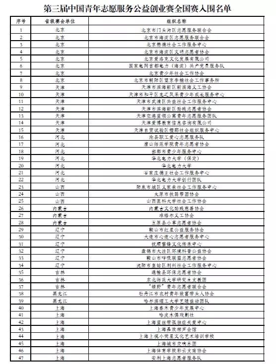 1.第三届中国青年志愿服务公益创业赛入围全国赛的179个组织