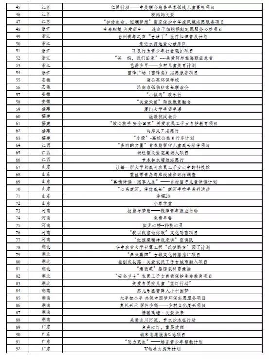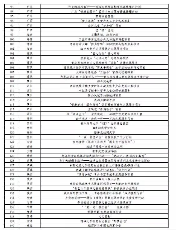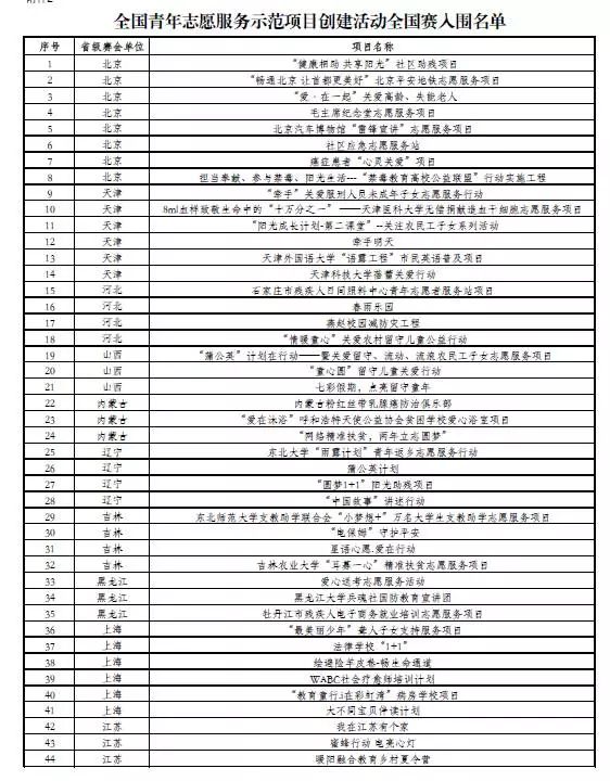 2.全国青年志愿服务示范项目创建活动入围全国赛的188个项目