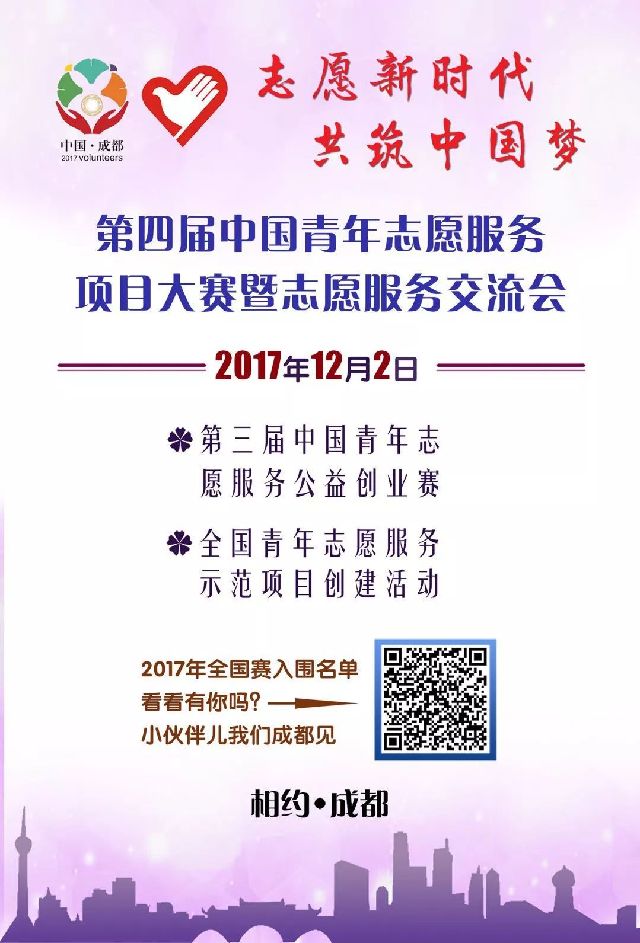 12月3日15:00-17:00举办中国青年志愿服务2017年发布大会。