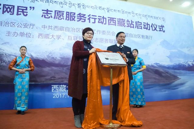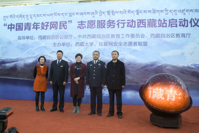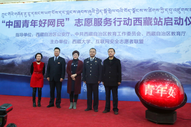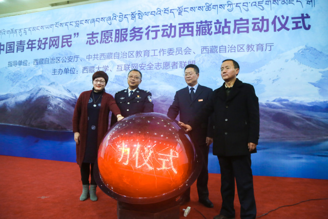 区公安厅、区教育厅、阿里巴巴集团、西藏大学有关领导共同按下“启动球”,宣布“中国青年好网民”志愿者服务行动西藏站和“2018年西藏青年好网民活动计划”正式启动。