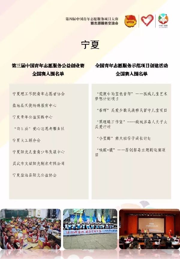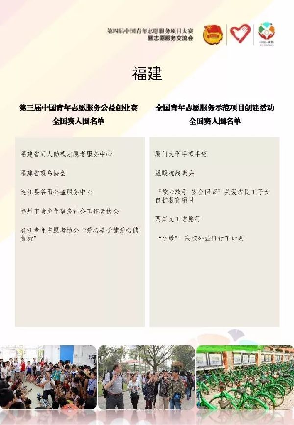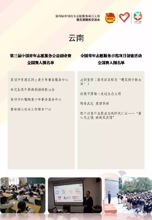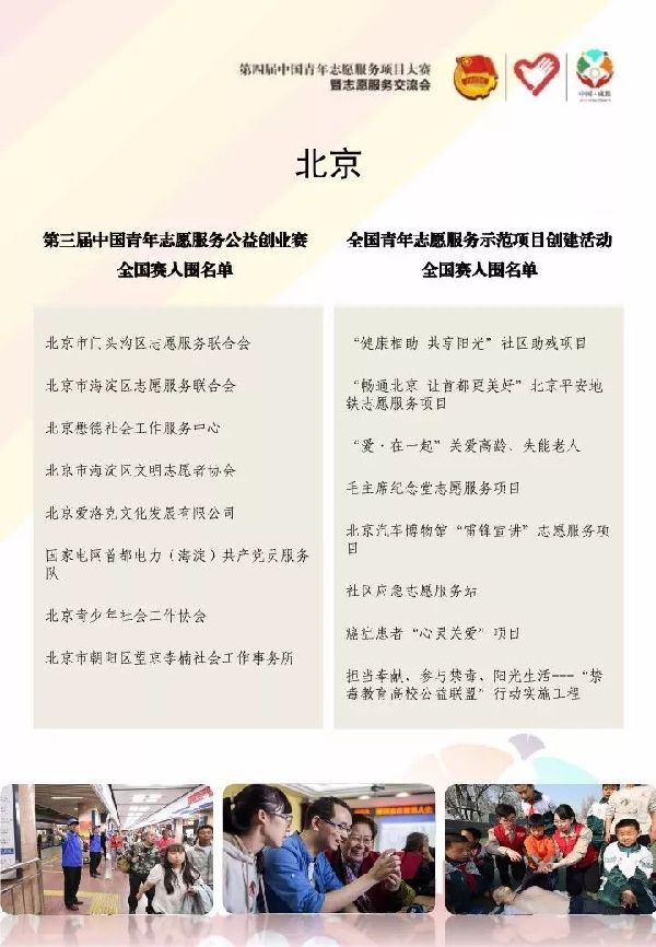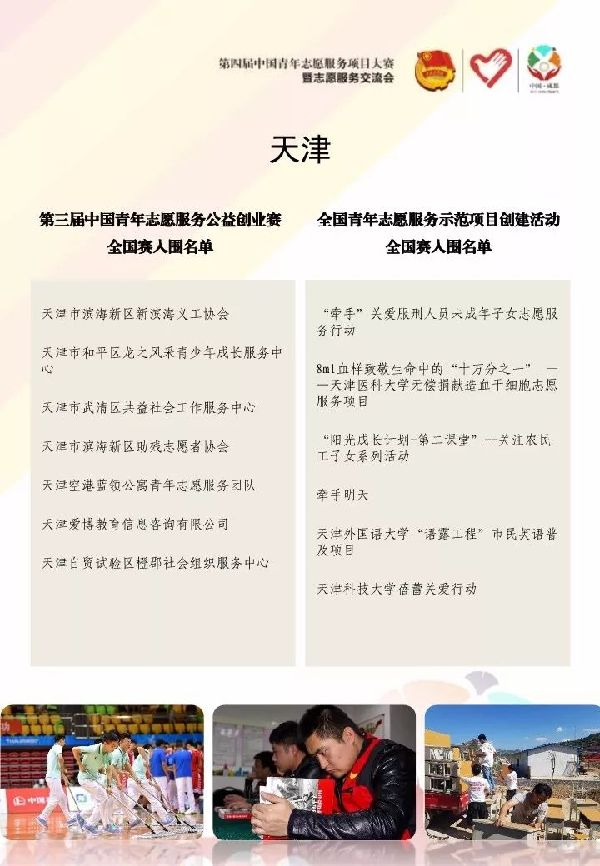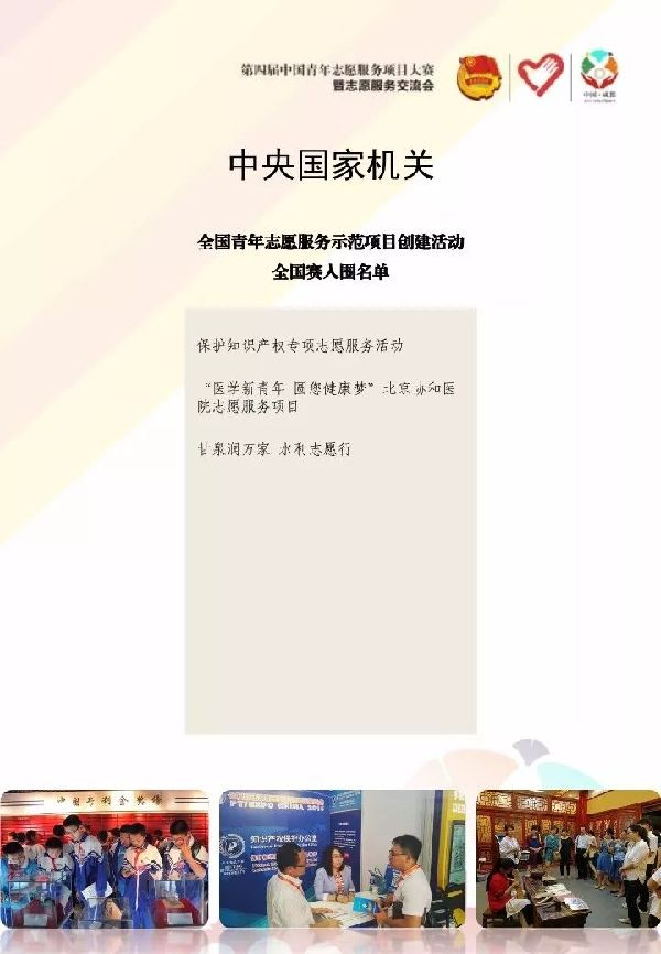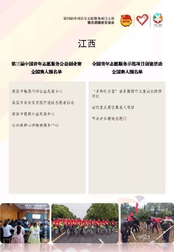 2014年以来,团中央联合中央文明办、民政部、水利部、中国残联、中志联及地方党委、政府连续举办了三届中国青年志愿服务项目大赛暨志愿服务交流会,为全国各地志愿服务组织搭建一个项目展示、资源配置、组织交流、文化引领的平台, 吸引了社会各界广泛关注志愿服务、践行志愿精神、参加志愿行动,有效推动了志愿精神的发扬。
