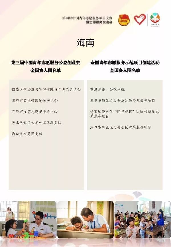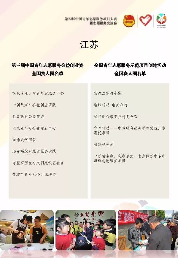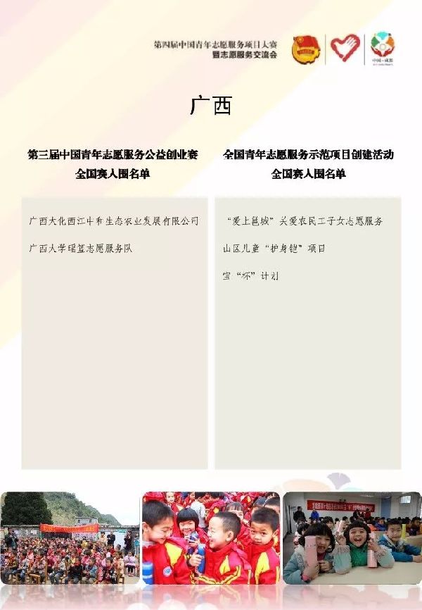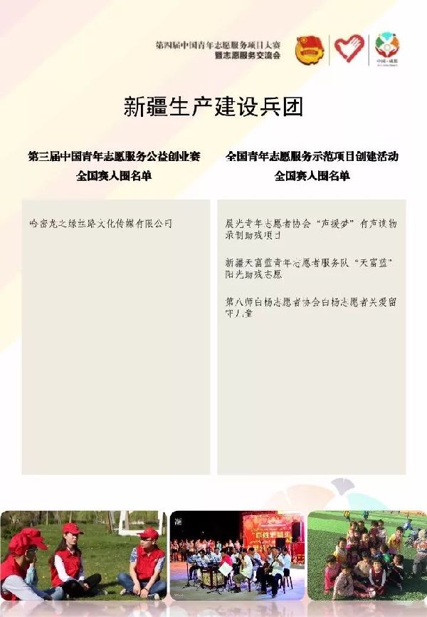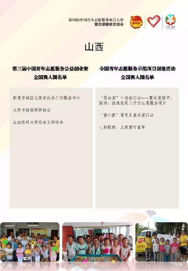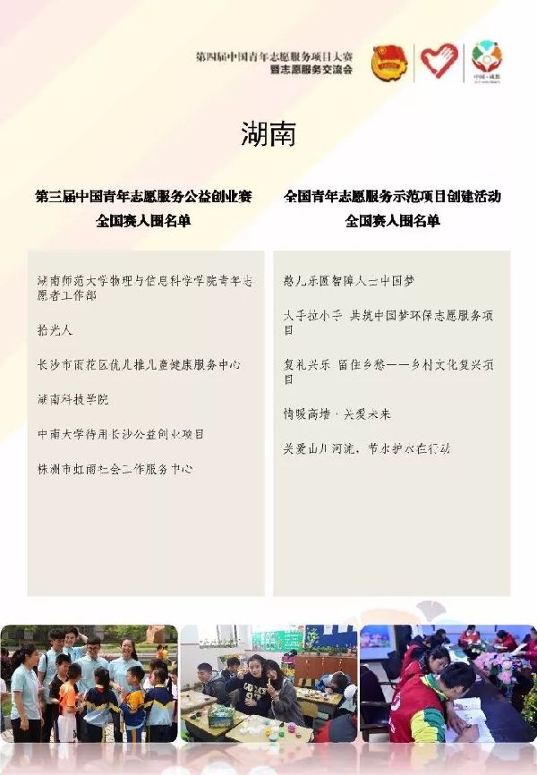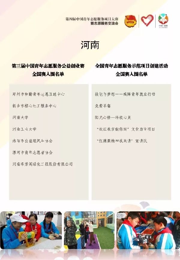 2014年以来,团中央联合中央文明办、民政部、水利部、中国残联、中志联及地方党委、政府连续举办了三届中国青年志愿服务项目大赛暨志愿服务交流会,为全国各地志愿服务组织搭建一个项目展示、资源配置、组织交流、文化引领的平台, 吸引了社会各界广泛关注志愿服务、践行志愿精神、参加志愿行动,有效推动了志愿精神的发扬。