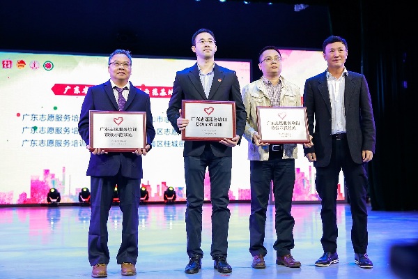 ▲图为团省委池志雄书记为新晋广东省五星志愿者代表颁发证书