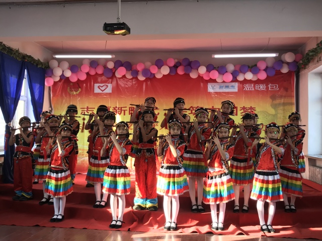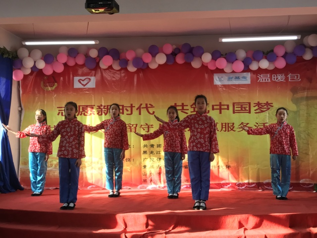 黎明第九小学校的主要生源是农村留守儿童和农民工子女,教育条件相对艰苦,必要的教学及娱乐设施相对陈旧。为了改善学习环境,让这里的孩子们能够更好、更快乐地学习,团省委、省青年志愿者协会联合广发银行哈尔滨分行、省地质测绘院等社会爱心组织,为学校建立了“七彩小屋”,添置了特色课教具和足球等体育用品,山水书城还为学校提供了一批励志图书。壹基金的爱心人士为孩子们送去了温暖大礼包。孩子们也表演了丰富多彩的节目感谢各位叔叔阿姨对他们的关爱。