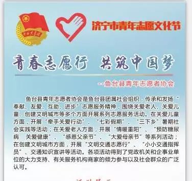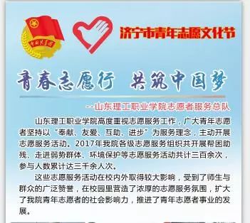 志愿源于心,服务在于行。近年来,团济宁市委高度重视青年志愿服务工作。无论是在街头巷尾、车站机场,还是在繁华闹市、旅游胜景,志愿者的身影无处不在。济宁专业化、特色化的志愿服务活动,也进一步弘扬了志愿精神,彰显了志愿魅力。下一步,济宁团市委、济宁市青年志愿者协会将继续开展志愿服务文化交流,在促进各志愿服务组织的交流学习,推广优秀志愿服务项目和志愿服务工作经验做法的同时,营造全市人人想当志愿者、人人争当志愿者的良好氛围。