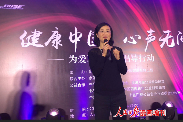 12月12日,“健康中国,心声无间”公益倡导行动在人民日报社举行。活动由能量中国管委会和中国健康教育工程办公室共同主办,京东公益、Bose耳机作为联合主办,并与中华国际科学交流基金会、听障儿童公益救助联盟、北回归线爱心协会、中国西部青年公益创客联盟、中国教育创新公益联盟、十省百校公益创业行动联合办公司开展公益合作。活动启动了“健康中国,心声无间”公益倡导计划,介绍了大健康战略下的公众健康,呼吁关注青少年儿童健康状况,倡议社会关注听障儿童。