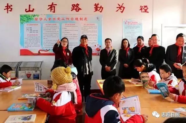 12月13日,日照市财政局“爱心书屋”在西湖镇响水社区正式启用,市财政局工作人员陪同留守儿童们阅读捐赠的书籍。