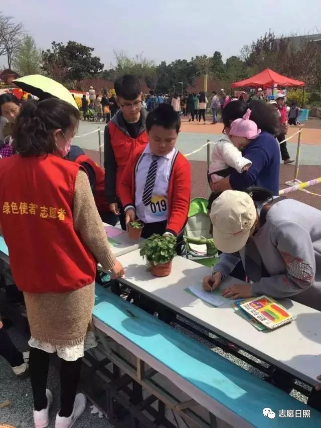 4月17日上午,由团市委、日照园林建设发展有限公司联合开展的2017年第2期“小手拉大手共筑碧水蓝天”以书易绿图书置换活动在植物园南门举行。