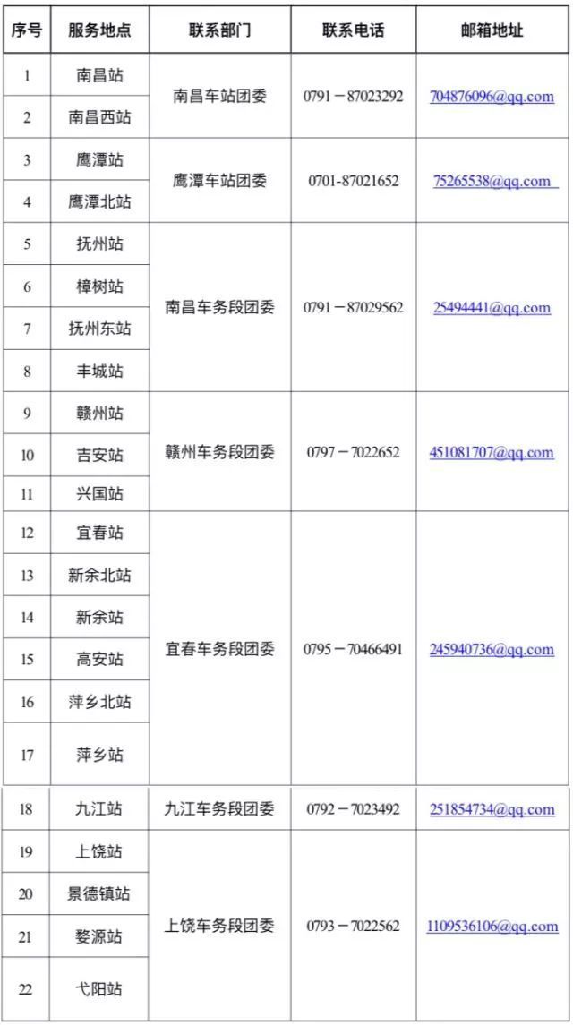 2018年江西省铁路春运志愿服务各火车站报名联系方式