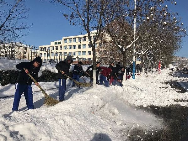 师范学校青年志愿者们纷纷带上工具,来到米山路清理积雪和冰块,大家忙碌的身影成为寒冬里一道亮丽的风景线。