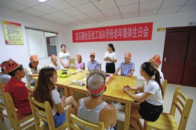 据了解,“六个一服务”即:针对特殊困难老人,每半月一次入户探访,建立重点人员个案服务档案,掌握服务对象的需求和困难并及时解决;每月打一个电话或发一条短信(每年每人12次),关心、慰问其身体、生活情况,及时了解其家庭的困难以便提供帮助;每个月开展一次老年小组活动,如插花、剪纸等培训,丰富业余生活、加强互助支持、提高自我效能;每两月开展一次节日主题活动,特别是在春节、端午节、重阳节等传统重点节日,丰富老人晚年生活;每两月为老人们过一次集体生日,让他们感受到社会的温暖;每季度开展一次老年课堂,内容涉及养生保健、饮食锻炼、心理调适等方面,倡导老人晚年健康生活。