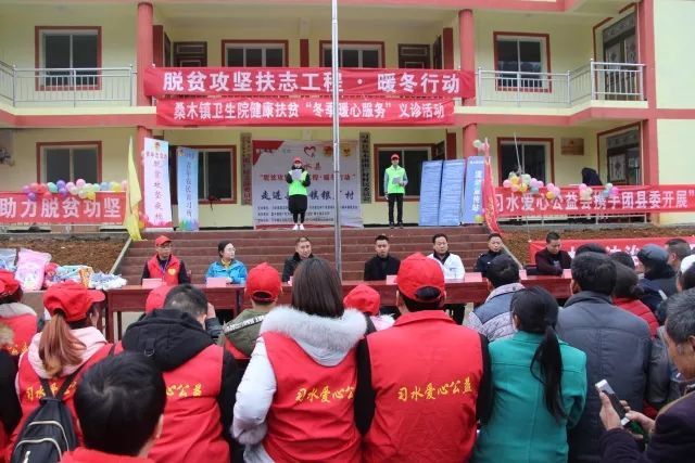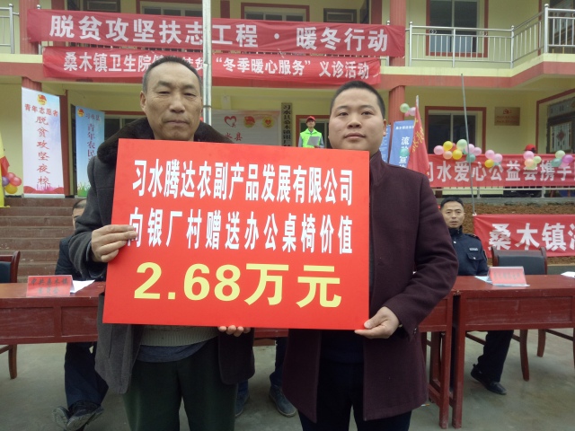 为切实打通脱贫攻坚“最后一公里”,帮助贫困村、贫困学生早日摆脱贫困,2018年1月22日,由习水县群工办、共青团习水县委、习水县文体广电新闻局、中共桑木镇委员会联合主办,桑木镇银厂村作战室、桑木镇卫生院、桑木镇派出所承办的“助力脱贫攻坚爱心暖冬行动”走进了桑木镇,为当地老百姓送政策、送春联、送服务、送文艺、送祝福。此次活动还得到了习水腾达农副产品发展有限公司、习水县爱心公益协会的赞助支持。